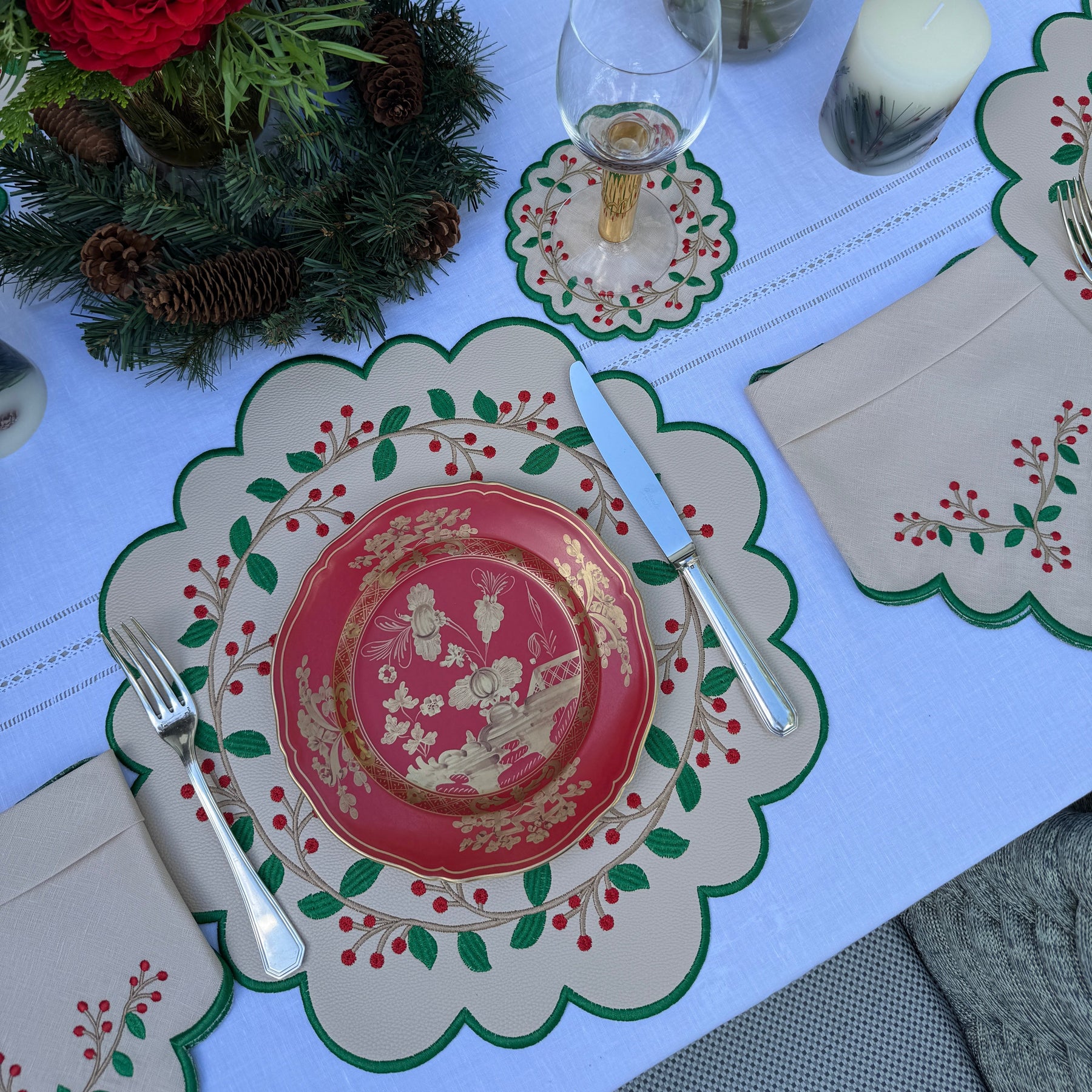 Elevate your Christmas event with our elegant, handmade, cocktail napkins. Designed for both style and function, they are perfectly sized for drinks, hors d'oeuvres, and add a touch of sophistication to any occasion. Make your event memorable with our premium cocktail napkins.