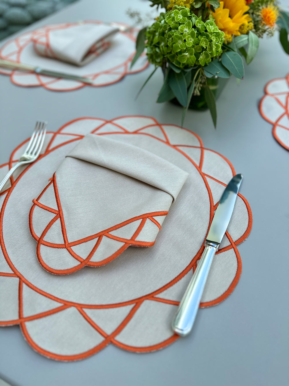 Elisa Placemats Beige w/ Orange Trim (Set of 4)