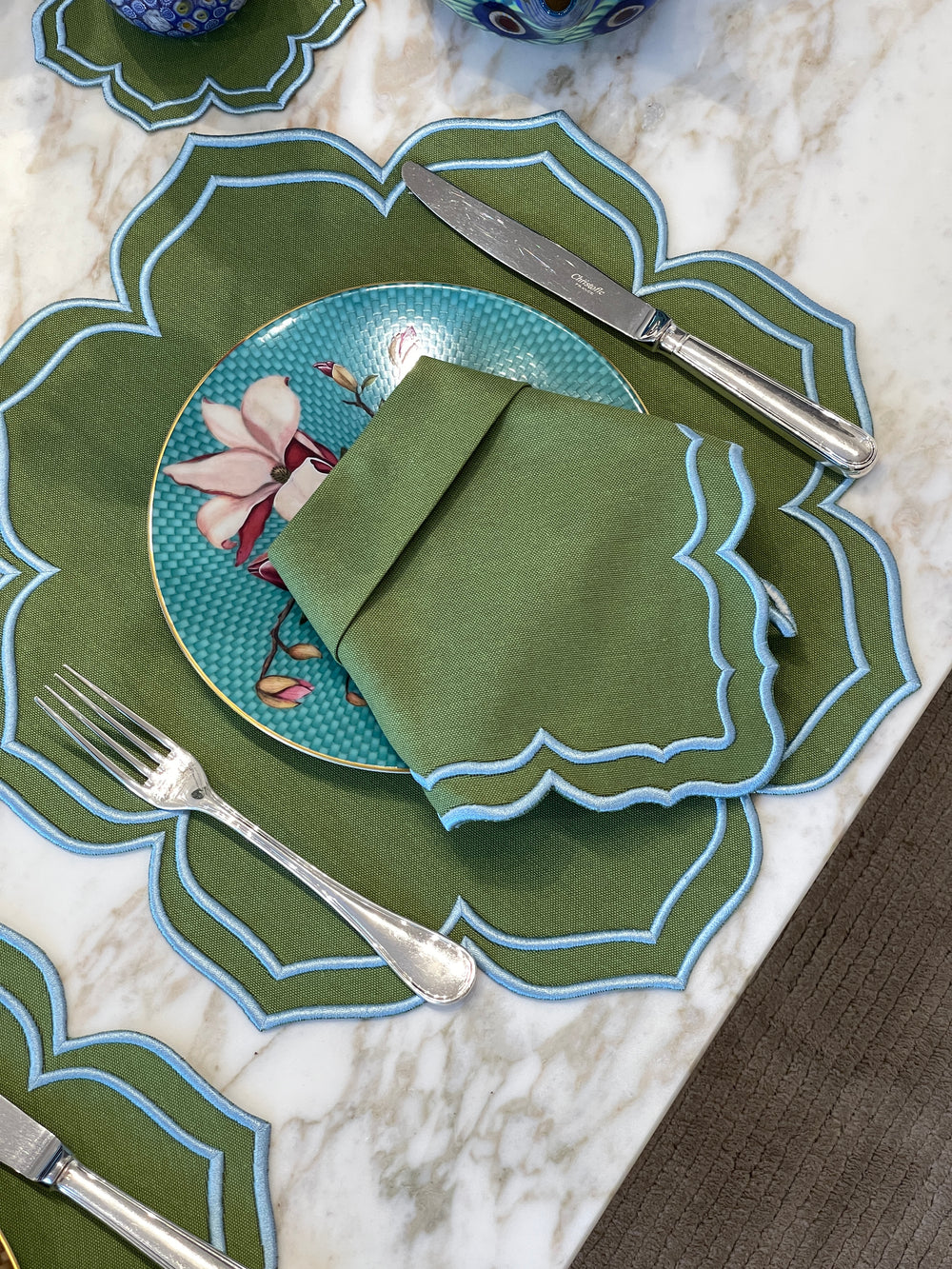 Dalia Green w/ Mint Trim Placemats (Set of 4)