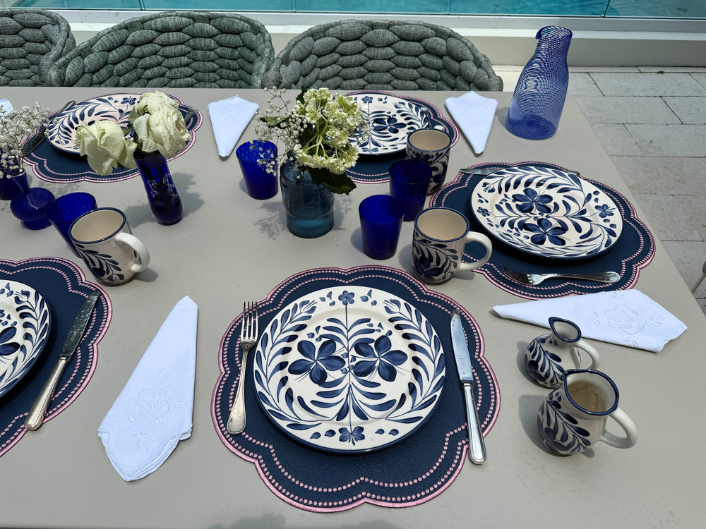 Nina Placemats Navy Blue w/ Rose Trim (Set of 4)